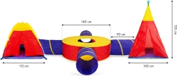 Kombinujte iglu, tipi, kruhové centrum a 4 tunely v libovolném uspořádání. Každý díl lze použít také samostatně – ideální do bytu i na zahradu.