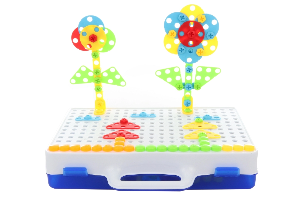Z dílků vytvoříte květiny, vzory i jednoduché 3D objekty. Děti trénují jemnou motoriku, logiku a představivost zábavnou formou.