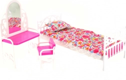 Objevte půvabnou sadu Glorie, která přináší postel pro panenky s měkoučkým přehozem a polštářkem, toaletní stolek se zrcadlovou fólií a praktickou židličku. Skvěle se hodí k většině běžných panenek a doplní jejich pokojíček o útulné místo na odpočinek i parádění.
