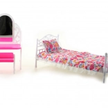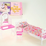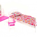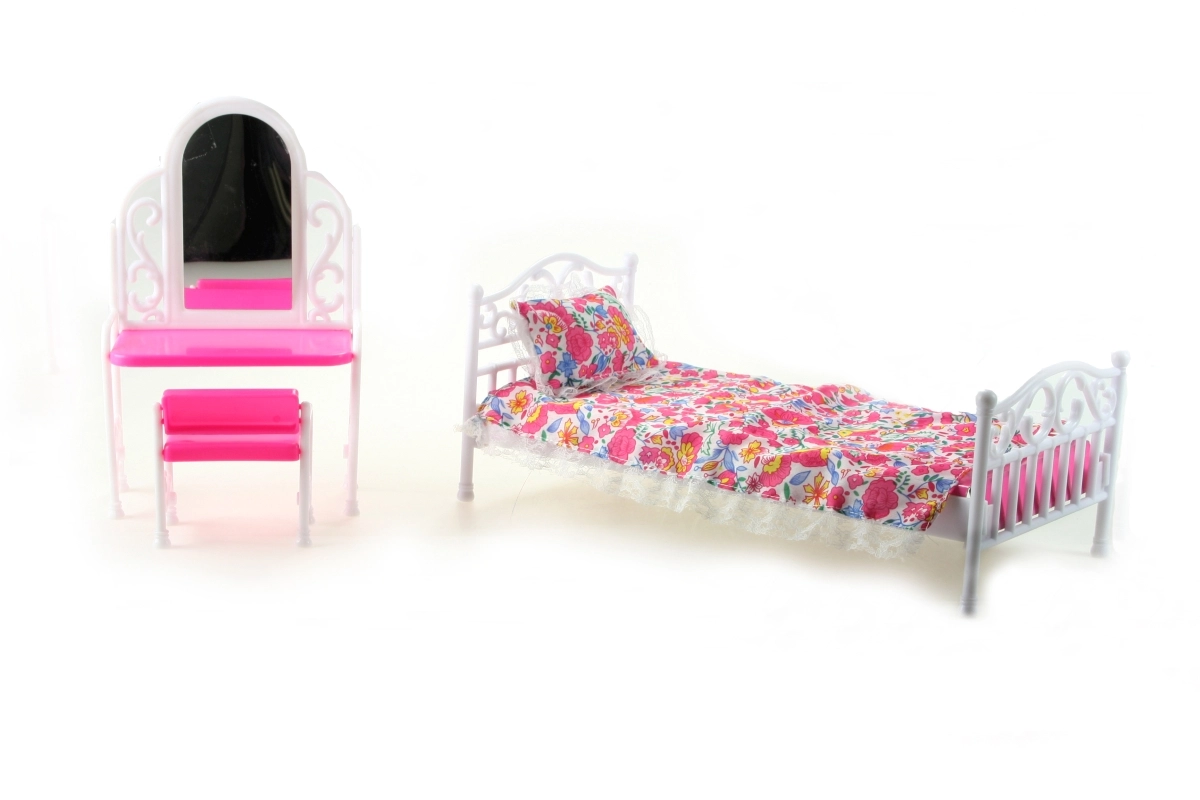 Objevte půvabnou sadu Glorie, která přináší postel pro panenky s měkoučkým přehozem a polštářkem, toaletní stolek se zrcadlovou fólií a praktickou židličku. Skvěle se hodí k většině běžných panenek a doplní jejich pokojíček o útulné místo na odpočinek i parádění.