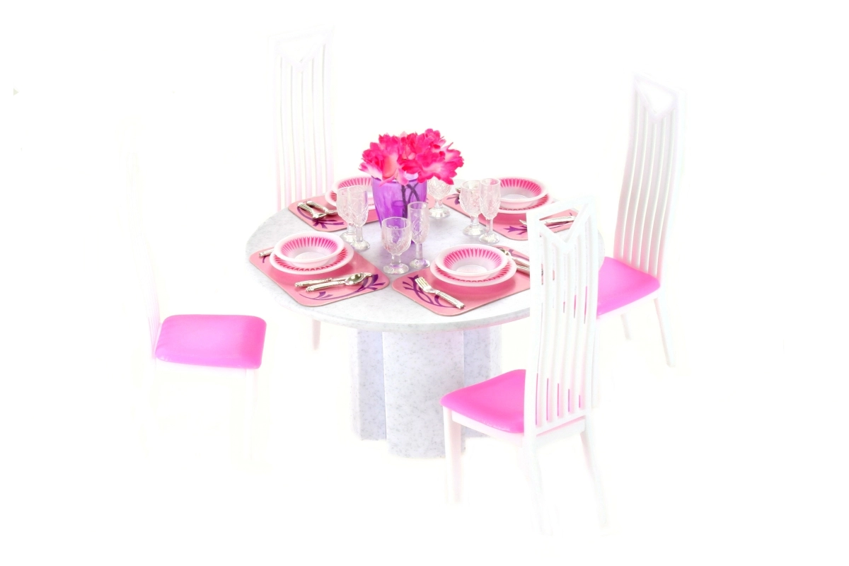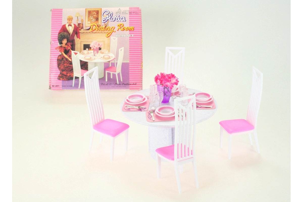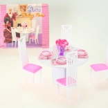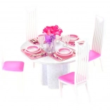Stylový jídelní set pro panenky Glorie promění každé dětské hraní v realistickou hostinu. Obsahuje kulatý stůl, 4 židle a 4 kompletní sady jídelního servisu. Ideální pro kreativní hru a rozvoj fantazie dětí od 3 let.