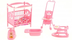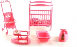 Kompletní sada do dětského pokojíčku pro panenky GLORIE potěší každého malého pečovatele. Najdete v ní postýlku s peřinkou a polštářkem, kočárek, chodítko, nočník a vaničku – vše z odolného plastu a ve velikostech ideálních pro hru. Skvělé pro rozvoj fantazie a hraní rolí. Vhodné od 3 let.