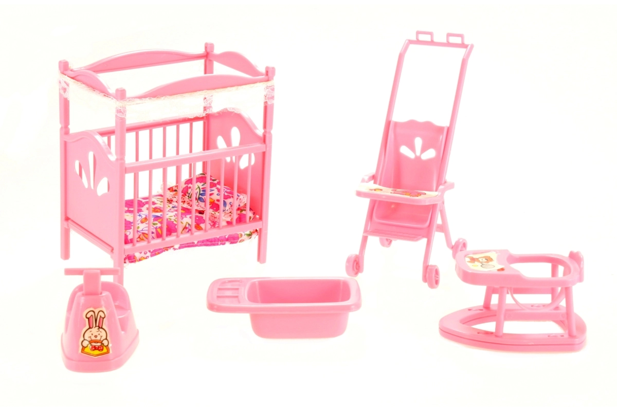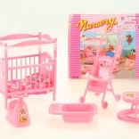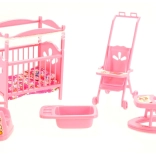 Kompletní sada do dětského pokojíčku pro panenky GLORIE potěší každého malého pečovatele. Najdete v ní postýlku s peřinkou a polštářkem, kočárek, chodítko, nočník a vaničku – vše z odolného plastu a ve velikostech ideálních pro hru. Skvělé pro rozvoj fantazie a hraní rolí. Vhodné od 3 let.