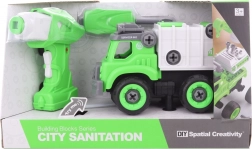 Zábavné a vzdělávací šroubovací popelářské auto na dálkové ovládání pro děti od 3 let. Děti si vozidlo snadno sestaví pomocí přiloženého šroubováku nebo vrtačky. Po vložení motorku do auta je možné jej ovládat dopředu a dozadu, auto navíc vydává realistické zvuky. Interaktivní hra, rozvoj jemné motoriky a snadné ovládání v jednom.