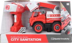 Zábavná a poučná hračka pro malé techniky: šroubovací hasičské auto, které si děti sestaví pomocí přiloženého šroubováku nebo vrtačky. Po vložení motorku z vrtačky do auta je možné vůz ovládat na dálku a jezdit vpřed i vzad. Auto vydává zvukové efekty, je vhodné od 3 let a napájí se 4× AA (nejsou součástí) a 3× AG13 (součástí).