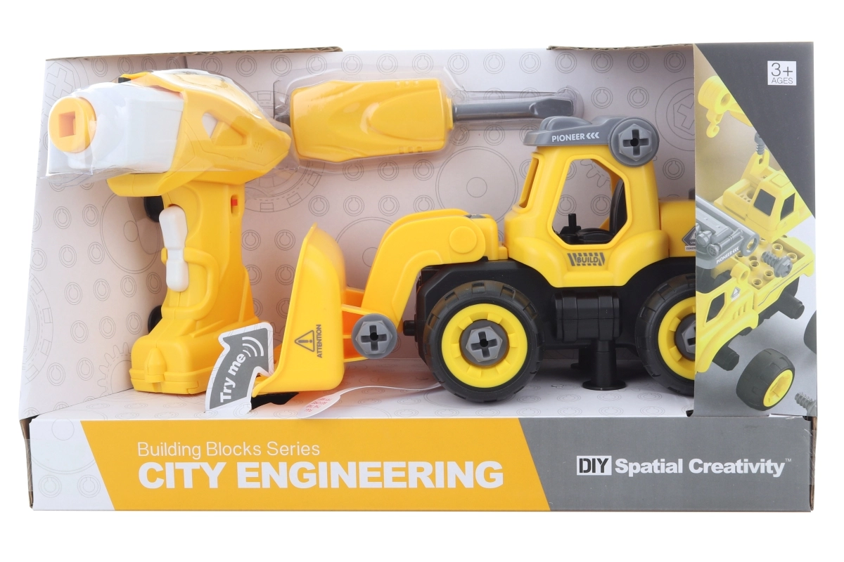 Zábavný šroubovací nakladač na dálkové ovládání potěší malé stavitele od 3 let. Děti si vozidlo samy složí pomocí přiloženého šroubováku či vrtačky a poté si užijí jízdu vpřed i vzad. Součástí je vyjímatelný motorek z vrtačky, realistické zvuky a jednoduché ovládání. Kreativní skládání, RC ovládání, zvukové efekty a rozvoj motoriky v jednom hračkářském setu.