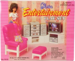 Vytvořte útulný obývací pokoj pro panenky se sadou Glorie, která nabízí bohatou výbavu a promyšlené detaily. Děti si užijí hodiny fantazijní hry díky realistickým miniaturám nábytku a elektroniky, jež perfektně doplní jejich domeček.