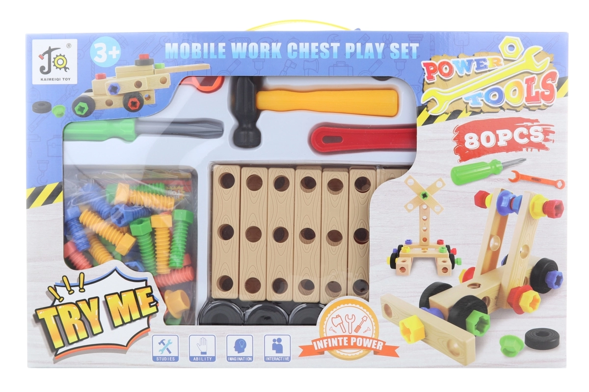 Objevte zábavnou a vzdělávací hračku pro malé kutily: šroubovací stavebnici s celkem 80 dílky a dětským nářadím. Podporuje jemnou motoriku, kreativitu a technické myšlení u dětí od 3 let. Součástí jsou oblíbené nástroje jako kladivo, šroubovák a klíč, se kterými si děti bezpečně vyzkouší první konstrukční projekty.