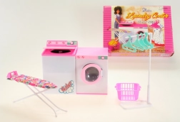 Set obsahuje vše, co je potřeba pro malé hospodyňky: kompaktní pračku a sušičku, stabilní žehlicí prkno s žehličkou, praktický stojan s ramínky a košík na prádlo. Panenka ani šatičky nejsou součástí balení. Hračka je určena pro děti od 3 let.