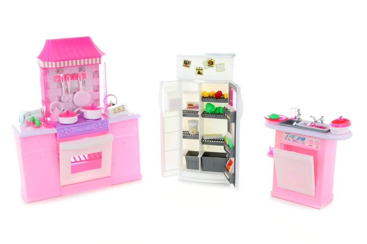 Stylový kuchyňský set GLORIE promění dětský pokoj v malou domácnost. Děti ocení detailní provedení s vestavěnou troubou, samostatným dřezem s myčkou a funkční lednicí, do které mohou ukládat dodávané potraviny. Realistické doplňky podporují kreativitu a rozvoj sociálních dovedností při hře.