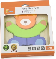 Dřevěné mini puzzle od známé značky Viga pro děti ideální pro domov i školku. Puzzle se skládá ze 4 dílů, které dohromady tvoří medvěda.