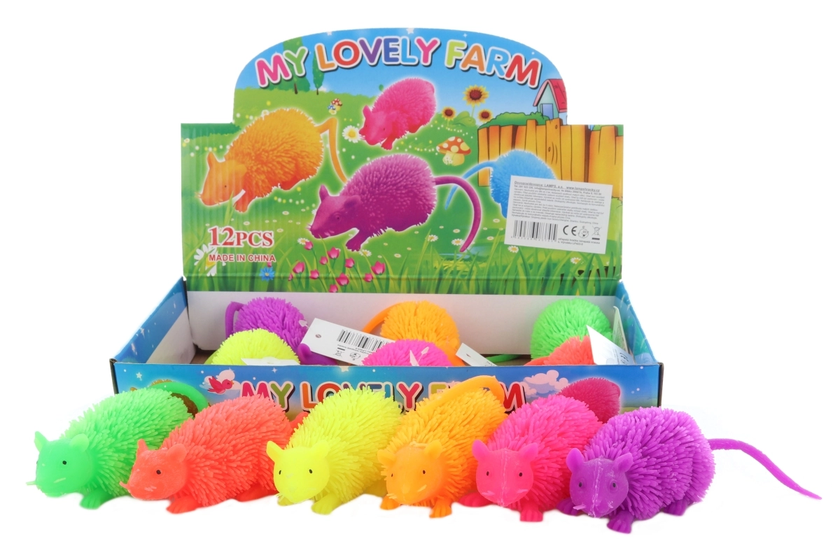 Myš je vyrobena z poddajného gumového materiálu, který je příjemný na dotek a podporuje smyslové vnímání. Skvěle poslouží i jako antistresová hračka pro mačkání a žmoulání.