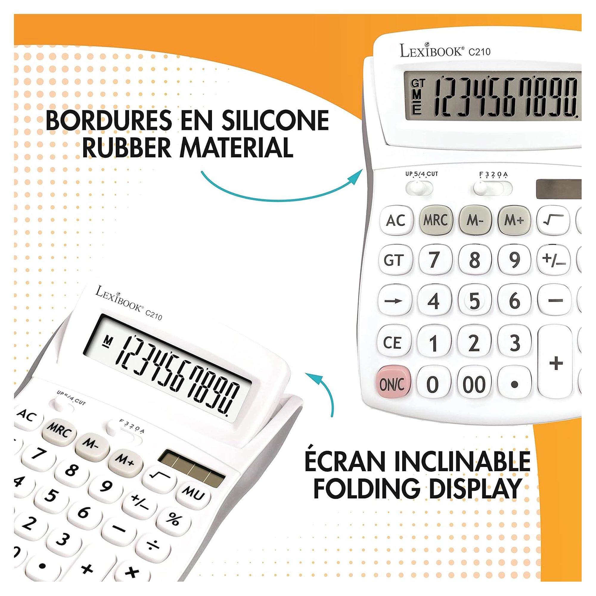 Tato praktická 10místná kalkulačka je navržena pro každodenní použití v kanceláři, ve škole i doma. Velký výklopný 1řádkový displej umožňuje pohodlné nastavení úhlu pro lepší čitelnost, zatímco velká odolná pogumovaná tlačítka zajišťují přesné a pohodlné zadávání údajů.