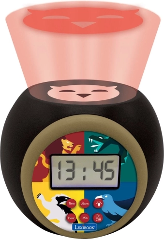 Kouzelný dětský budík s projektorem HARRY POTTER promítne na strop tematický obrázek a vytvoří uklidňující atmosféru před spaním. Nabízí noční světlo se třemi barvami (oranžová, modrá, červená) s automatickou změnou, podsvícený LCD displej s 12/24h režimem, snadné ovládání a funkci odložení o 5 minut. Napájení zajišťují 3× AAA baterie (nejsou součástí).