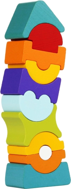 Zaoblené díly umožňují stavět věž rovně i naklánět do stran. Děti si procvičí trpělivost, koordinaci a prostorovou představivost při každém pokusu.