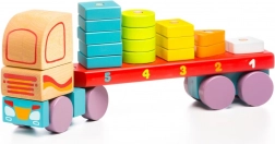 Dřevěná skládačka CUBIKA Kamion s geometrickými tvary je více než jen hračka. S 19 barevnými díly lze děti učit přiřazovat tvary a barvy, což rozvíjí jejich senzomotorické schopnosti. Každá součást je navržena tak, aby zapadala do dalších, a pokročilejší stavitelé mohou kontrolovat správnost počtu vyskládaných dílů podle číslic na podvozku kamionu.