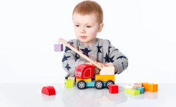 Hračka podporuje rozvoj senzomotorických schopností a kreativity díky možnosti manipulace a skládání kostek.