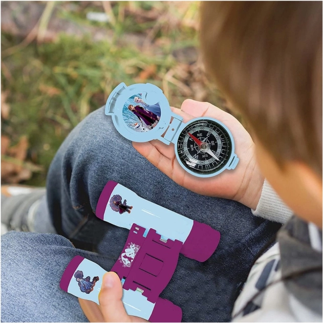 Dalekohled pro hravé pozorování, kompas na hraní, svítilna pro výpravy za šera – vše v oblíbeném motivu FROZEN pro maximální zábavu.