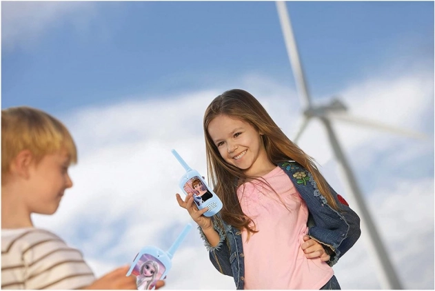 Tato kouzelná sada inspirovaná pohádkovým světem FROZEN promění každou procházku v dobrodružství. Děti si užijí komunikaci na vzdálenost až 120 metrů díky dvojici vysílaček s čistým digitálním zvukem, ergonomickým tvarem pro malé ruce a intuitivním tlačítkem TALK.