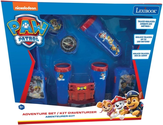 Objevte zábavnou dobrodružnou sadu pro malé průzkumníky s motivem PAW PATROL, která obsahuje dvojici vysílaček s dosahem až 120 m, dětskou baterku, dalekohled a kompas na hraní. Díky jednoduchému ovládání, digitálnímu zvuku a odnímatelným klipsům na opasek je ideální pro venkovní hry, výpravy a hru na špiony.