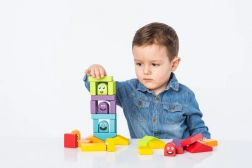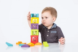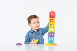 Stohování a stavění věží z pestrých dílků trénuje jemnou motoriku a koordinaci, zároveň povzbuzuje fantazii a volnou hru.