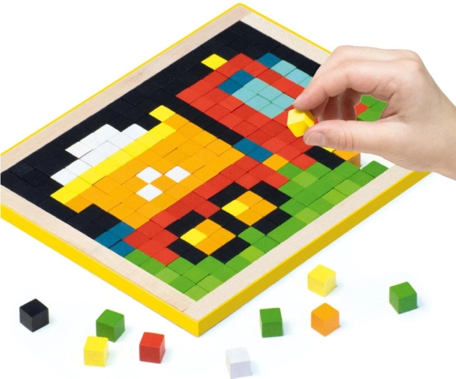 Drobné dřevěné kostky 1 × 1 cm umožní dětem skládat detailní mozaiky a rozvíjet přesnost i trpělivost.