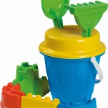 - Kyblík ve tvaru hradu, sítko, lopatka, hrabičky, 4 tvořítka hradeb