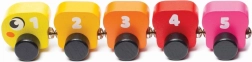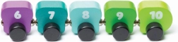 Deset dílků očíslovaných 1–10 tvoří plynulou duhovou škálu. Děti si upevňují pořadí čísel i rozlišování barev přirozenou hrou.