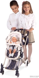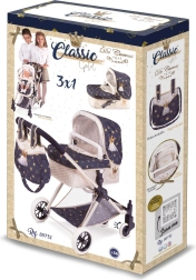 DeCuevas 80732 Kočárek pro panenky 3 v 1 XL s taškou Classic Gold 2020 - 81 cm, je jak již sám název napovídá z kolekce, která je vytvořena pro zákazníky, kteří mají v oblibě zlaté doplňky. Pro tuto velmi propracovanou kolekci je charakteristická především nádherně temně modrá barva v kombinace se smetanovou a bílou. Vše je zdobeno právě zlatými královskými korunkami a doplněno zlatavým třpytivým lemováním. Výrobky z této kolekce působí doslova velmi luxusně. Kočárek je díky vysoké rukojeti a kombinované funkci hlubokého a sportovního kočárku vhodný spíš pro starší slečny, které toto vše už při hraní plně využijí. Výhodou kočárku je i odnímatelná přenosná korbička, ve které lze bezpečně přenášet panenku. Nádherný španělský design, precizní zpracování. Skládací model, velmi snadná manipulace během samotné hry. Materiál: kov, plast, textil. Baleno v krabici v barvách kolekce. Doporučený věk od 3 let.
