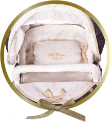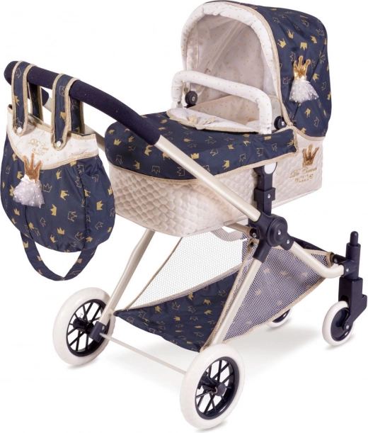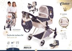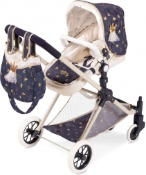 DeCuevas 80732 Kočárek pro panenky 3 v 1 XL s taškou Classic Gold 2020 - 81 cm je z kolekce Classic, která v tomto roce vsadila na modrobílou kombinaci se zlatými korunkami.