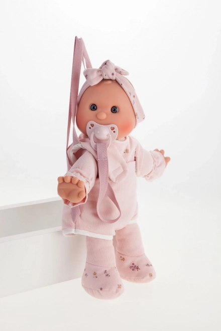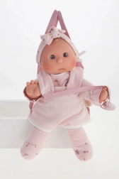 Tato ručně vyráběná španělská panenka potěší svou jemností, kvalitou a důrazem na bezpečí dětí. Měkké látkové tělíčko je příjemné na mazlení, hlava a končetiny z kvalitního měkčeného vinylu působí realisticky a snadno se udržují. Díky magnetickému dudlíku si s panenkou děti užijí mnoho autentických her.