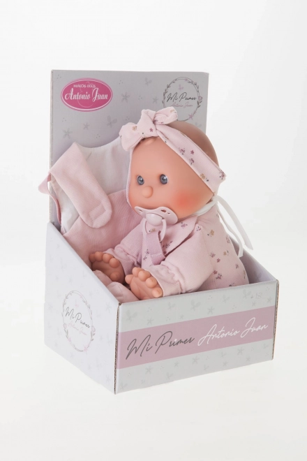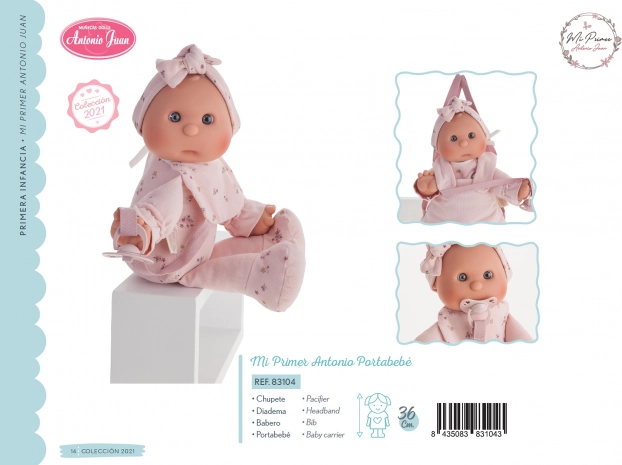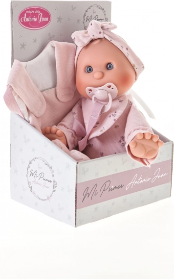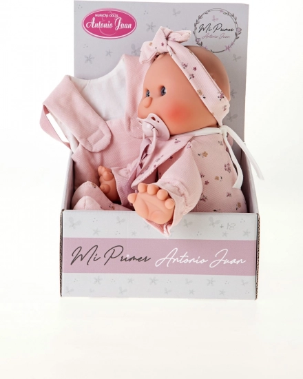 Roztomilá panenka od značky Antonio Juan je ideální jako první panenka pro batolata. Má měkké látkové tělo, realistickou hlavičku a končetiny z měkčeného vinylu a součástí je magnetický dudlík. Vybrané oblečky jsou z organické bavlny, vše je baleno v dárkové krabici. Velikost 36 cm, doporučeno od 18 měsíců.