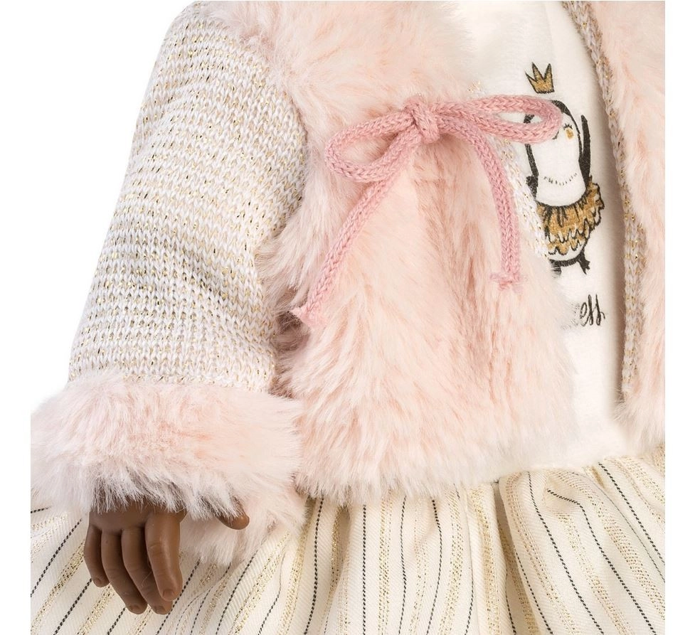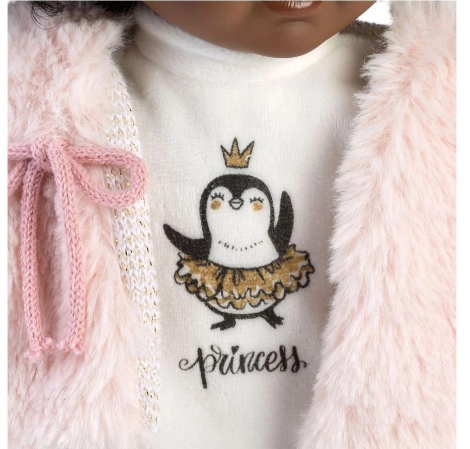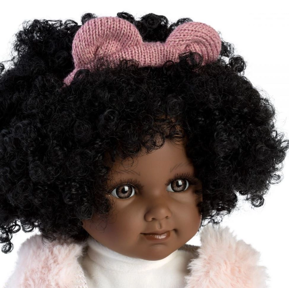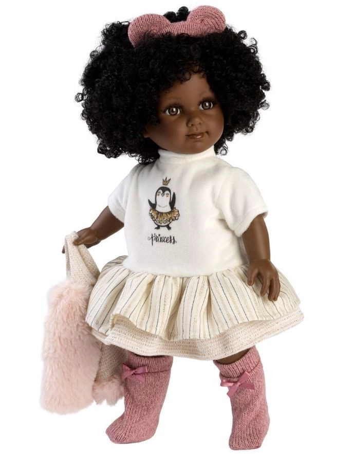 Objevte kouzelnou panenku Llorens Zuri 35 cm – elegantní tmavší pleť, bohaté kudrnaté vlásky s růžovou mašlí a stylový outfit z hebkých látek. Ruce, nohy i hlavička z jemného vinylu, měkké textilní tělíčko pro pohodlné mazlení. Ruční výroba ve Španělsku a bezpečnost dle EU norem zaručují kvalitní a bezpečnou hru.