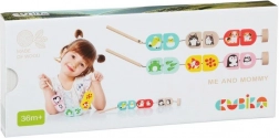 Dřevěný navlékací set Cubika Naše maminky je ideální hračka pro děti od 3 let. Dítě hledá dvojice mláďat a jejich maminek a oba dílky navléká na šňůrku s dřevěným kolíčkem. Tím přirozeně trénuje úchop, soustředění a trpělivost, zároveň rozvíjí slovní zásobu a představivost při vyprávění příběhů o zvířátkách.