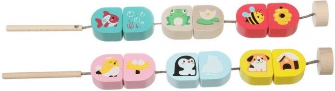 Děti při navlékání spojují zvířátka s prostředím, kde žijí, a rozvíjejí logické uvažování i slovní zásobu. Ideální pro hravé učení každý den.
