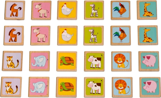 Dřevěné pexeso Zvířátka od značky LUCY & LEO přináší 12 párů barevných obrázků oblíbených zvířátek. Každá kartička je příjemně veliká, dobře se drží v dětské ruce a díky kvalitnímu dřevu vydrží i časté hraní. Ideální pro první paměťové hry, společné chvilky s rodiči i samostatné objevování.
