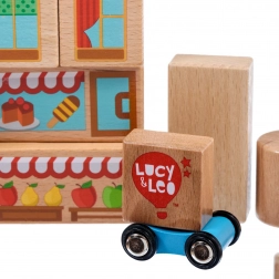 Objevte kouzlo kreativního stavění s dřevěnou sadou Lucy & Leo město. Sada obsahuje 25 kvalitních dřevěných dílů včetně 2 pojízdných autíček, různých tvarů a barev pro stavbu domečků a uliček. Ilustrované prvky jako okna, střechy a výlohy obchodů podněcují fantazii a tematickou hru. Hračka podporuje jemnou motoriku, logické myšlení a kreativitu, a po hraní ji snadno uložíte do praktického kulatého boxu s víkem a držadlem.