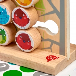 Velké, snadno uchopitelné kolíčky s obrázky ptáků a koček motivují děti k opakovanému hraní a tréninku jemné motoriky i barev.