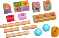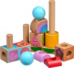 Dřevěná skládačka Tvary a emoce kombinuje hravé učení a zábavu. Děti dle karet skládají geometrické tvary s veselými obličejíky na kolíkovou základnu, čímž posilují koordinační dovednosti, vizuální vnímání a logiku. Kvalitní dřevěné provedení a syté barvy podporují pozornost a chuť tvořit.
