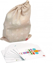 Součástí balení je 24 výzev/předloh, které postupně zvyšují náročnost. Díky lněnému sáčku se všechny díly snadno uklidí a hračka je tak ideální i na cesty. Bezpečné materiály a hladké hrany jsou přizpůsobené dětským rukám.