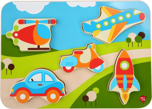Objevte zábavné dřevěné puzzle s motivem vozidel, které rozvíjí jemnou motoriku, koordinaci oko–ruka a rozpoznávání tvarů. Velké, barevné dílky se dětem dobře drží a snadno se vkládají do správných výřezů. Ideální volba pro první puzzle pro malé nadšence do aut, letadel a dalších dopravních prostředků.