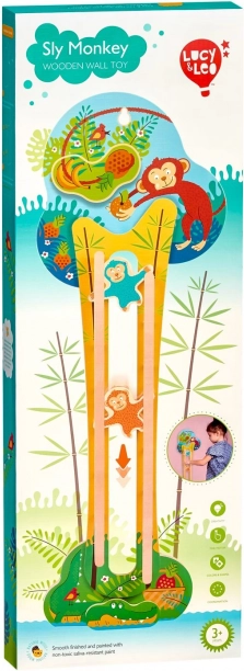 Zábavná dřevěná nástěnná hračka Lucy & Leo Mazané opičky přináší dětem radost z pohybu a učení. Dvě barevné opičky se po spuštění z vrcholu „kmenů“ svižně klouzají dolů, dělají přemety a otáčejí se po dráze. Podporuje jemnou motoriku, koordinaci oko–ruka a přirozenou zvídavost. Snadná montáž na stěnu, upevňovací prvky v balení.