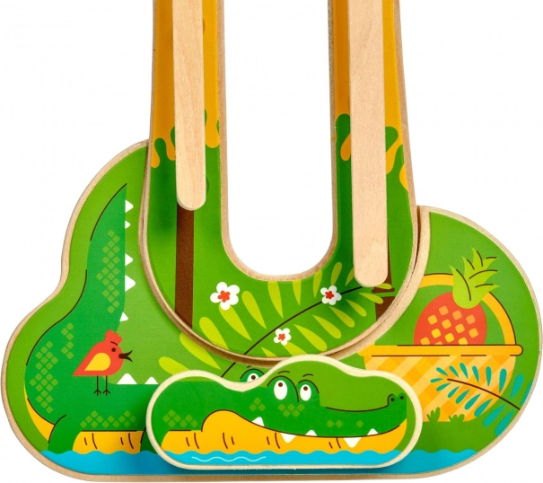 Dřevěné provedení a syté barvy podporují smyslové vnímání a rozvoj dovedností. Hračka je ideální pro předškolní děti, které si trénují zručnost prstů, pozornost a logické uvažování. Montáž je jednoduchá a bezpečná – vše potřebné najdete v balení.