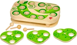 Díky 9 vyměnitelným předlohám a otáčivým listům lze obtížnost přizpůsobit věku i dovednostem dítěte. Hra je povrchově upravena bezpečnými, netoxickými barvami odolnými vůči slinám a menší díly snadno uložíte do lněného sáčku.