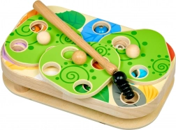 Bezpečná magnetická hůlka pomáhá dětem chytat barevné housenky do otvorů. Rozvíjí jemnou motoriku, koordinaci a trpělivost.