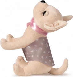 Pejsek má obleček na suchý zip a ozdobnou stuhu pod krčkem, což přidává na celkové atraktivnosti. Je vhodný pro děti od 3 let. Materiály použité při výrobě zahrnují plyš, textil a plast, a díky tomu je hračka nejen příjemná na dotek, ale také snadno pratelná na 30°C.