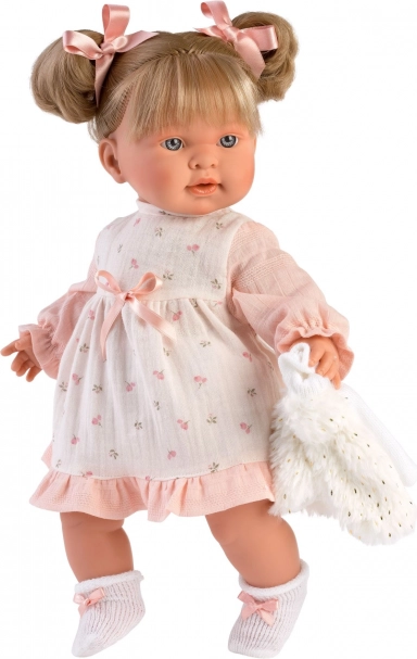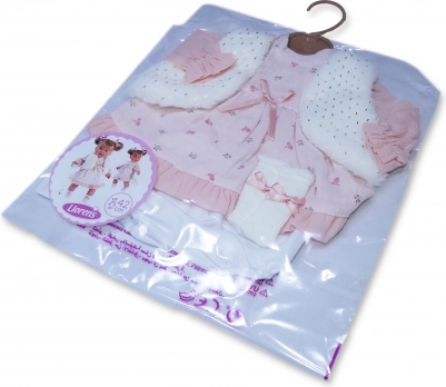 Stylový 4dílný obleček pro panenku 42 cm od značky LLORENS potěší jemnými růžovými šaty, měkoučkou vestičkou a kalhotkami na ramínku. Vyrobeno ve Španělsku, ideální pro každodenní hraní i slavnostní chvíle. Vhodné od 3 let.