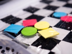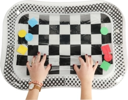 Objevte kontrastní vodní podložku, která nejen zaujme vaše dítě, ale zároveň podporuje jeho senzorický a motorický vývoj. Tato podložka s černobílým šachovnicovým motivem obsahuje plovoucí barevné geometrické tvary, které se pohybují při dotyku dítěte.