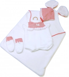 Dekorativní podložka s oušky spolu s 3dílným oblečkem vytváří sladěný outfit, který dodá hraní s panenkou nový rozměr.