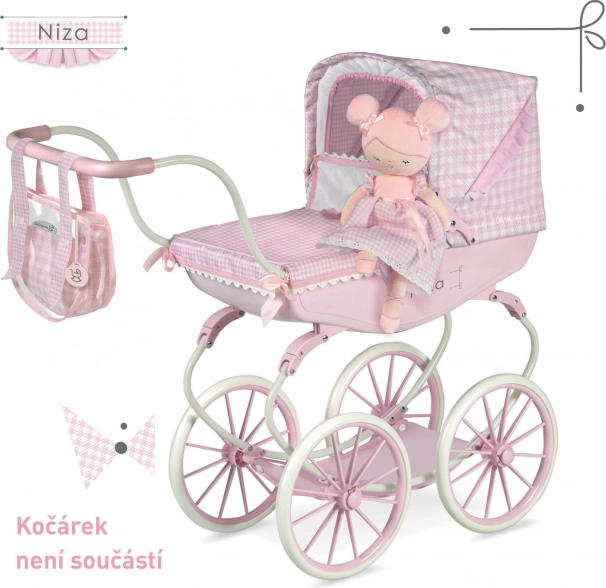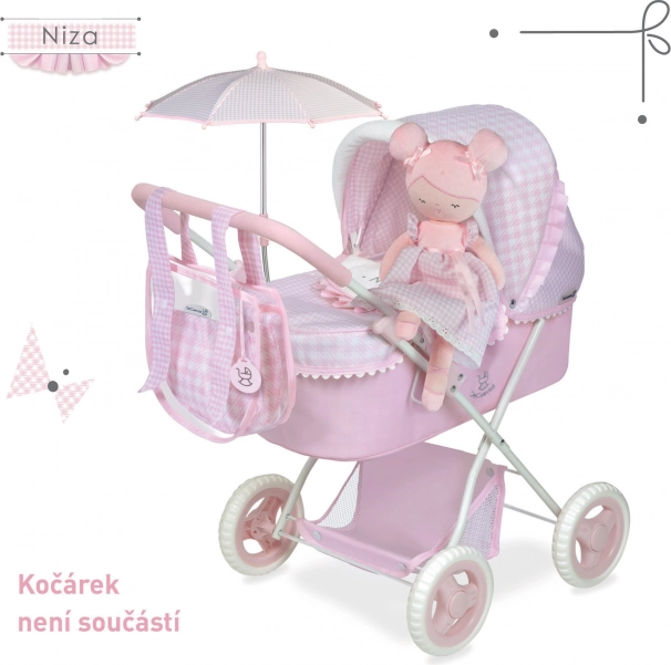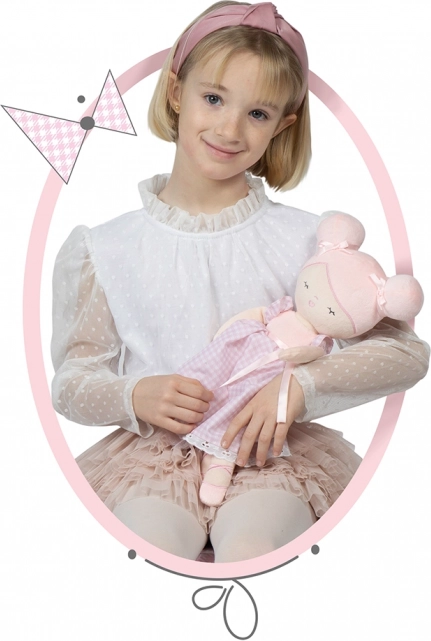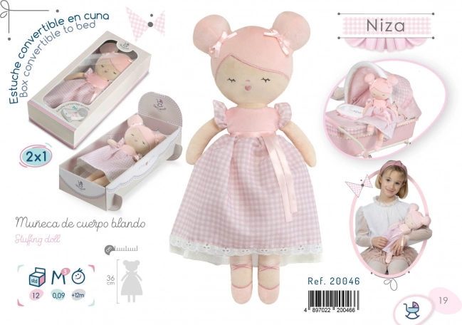 Roztomilá plyšová panenka Niza v něžném růžovém provedení potěší každou malou baletku. Je lehoučká, hebká na dotek a ideální na mazlení i na cesty. Součástí je chytrá krabička 2v1 přeměnitelná na kolébku, takže si dítě může ihned hrát. Panenka je pratelná při 30 °C a vyniká kvalitním zpracováním a jemným španělským designem.
